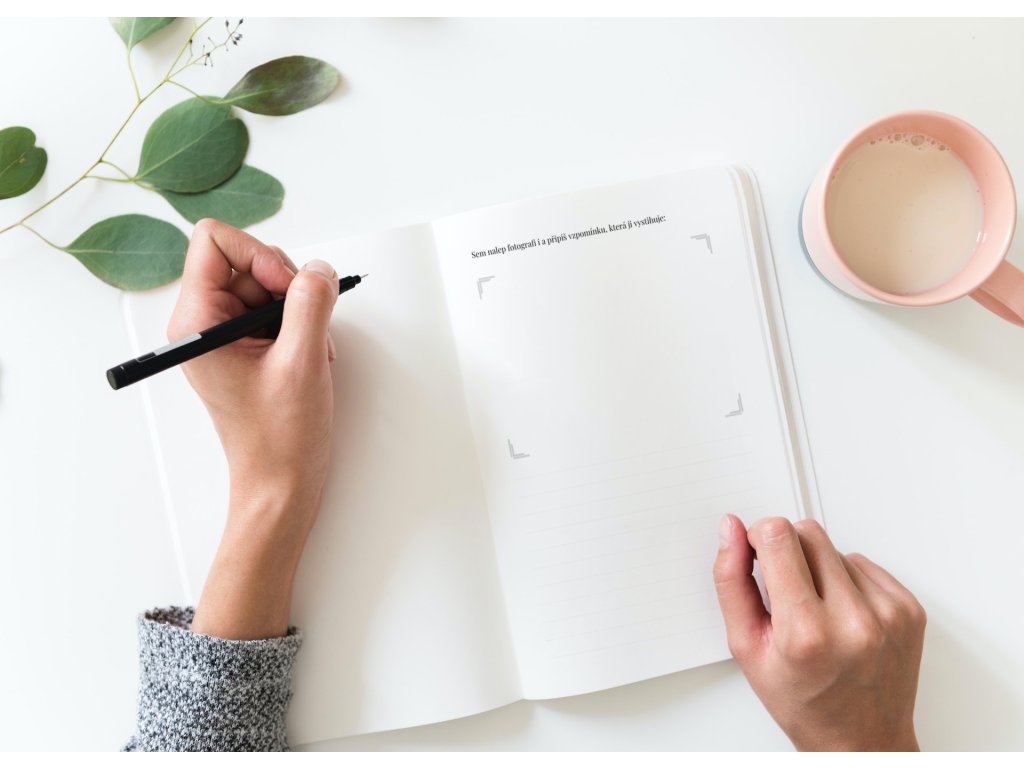 V deníku jsou části s otázkami, kde stačí doplnit tvá odpověď. A nemusíš na to jít postupně, klidně přeskakuj, a když se ti nějaká otázka nebude líbit, přelep ji fotografií a doplň vzpomínku.