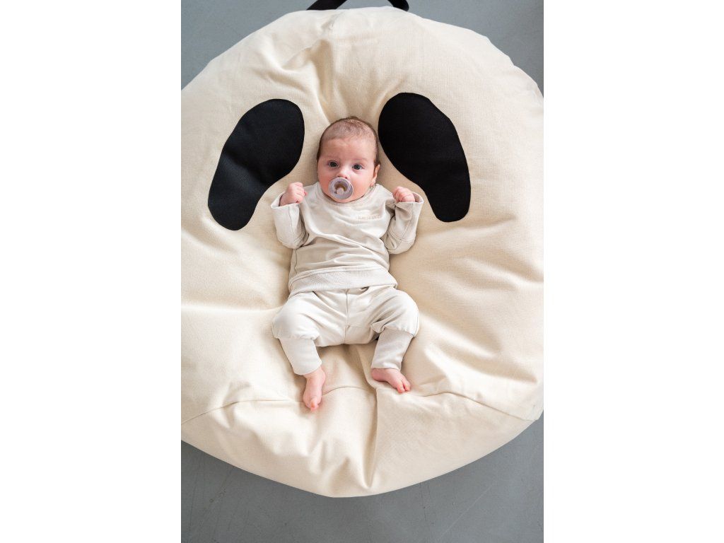 Das hellbeige Sweatshirt ist sehr elastisch, sodass es die Bewegungsfreiheit des Kindes nicht einschränkt, nicht einengt und sich leicht anziehen lässt.
