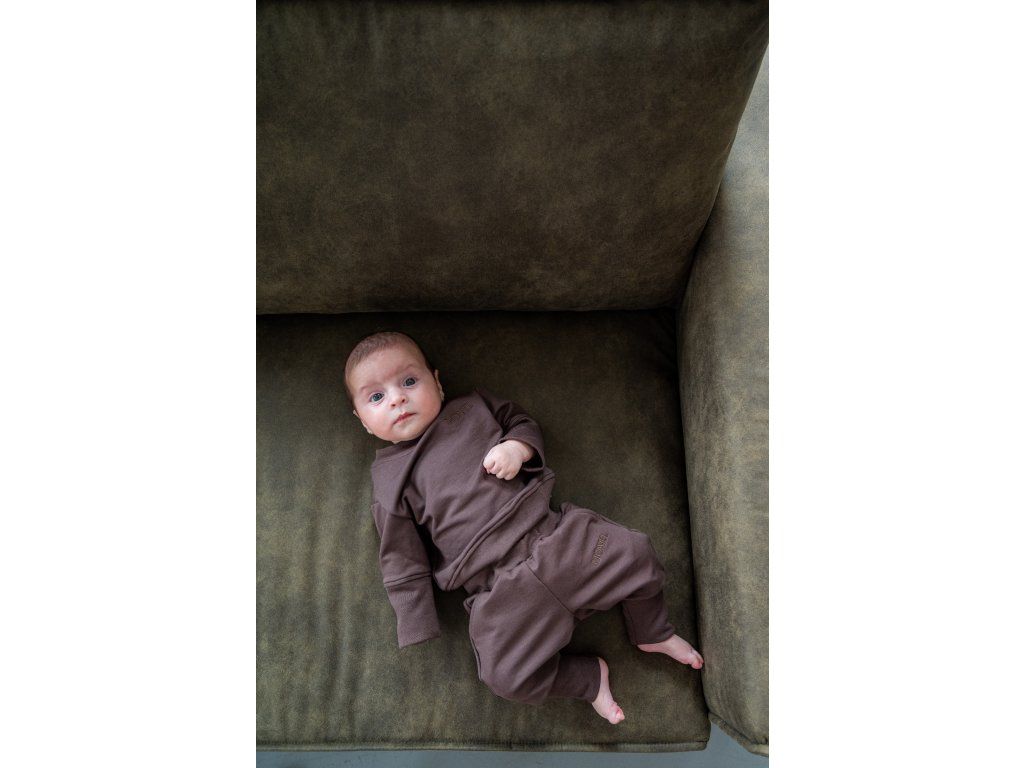 Der mitwachsende Kinder-Trainingsanzug Moniel Basic Chocolate ist elastisch und erstaunlich bequem. Ihr Kind wird sich darin wohlfühlen, zu Hause und draußen. Das Sweatshirt hat wachsende Ärmel und die Jogginghose ist in Länge und Breite wachsend. Hergestellt in der Tschechischen Republik. Größen von Geburt an bis 8 Jahre. Farbe dunkelbraun. Größe: 62/68 3-6 Monate