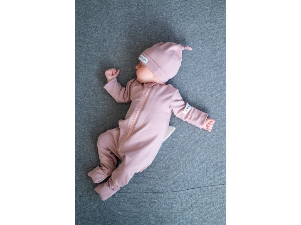 Latzhosen in den Größen 50, 56, 62/68 haben eine spezielle Verarbeitung an den Ärmeln, die es ermöglicht, die Hände zu bedecken und ein Kratzen im Gesicht zu verhindern und die Hände des Babys warm zu halten.