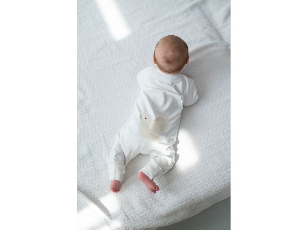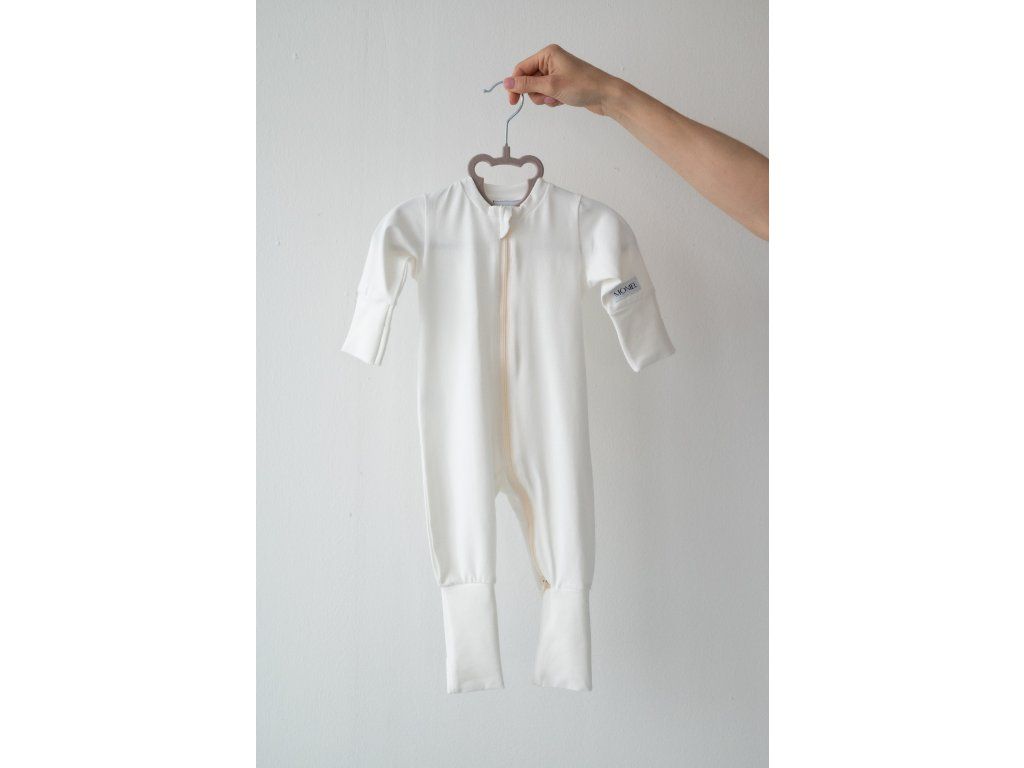 Der Overall hat außerdem spezielle Ärmelbündchen, die es ermöglichen, die Händchen zu bedecken und so Kratzer im Gesicht zu vermeiden und die Händchen des Babys warm zu halten.