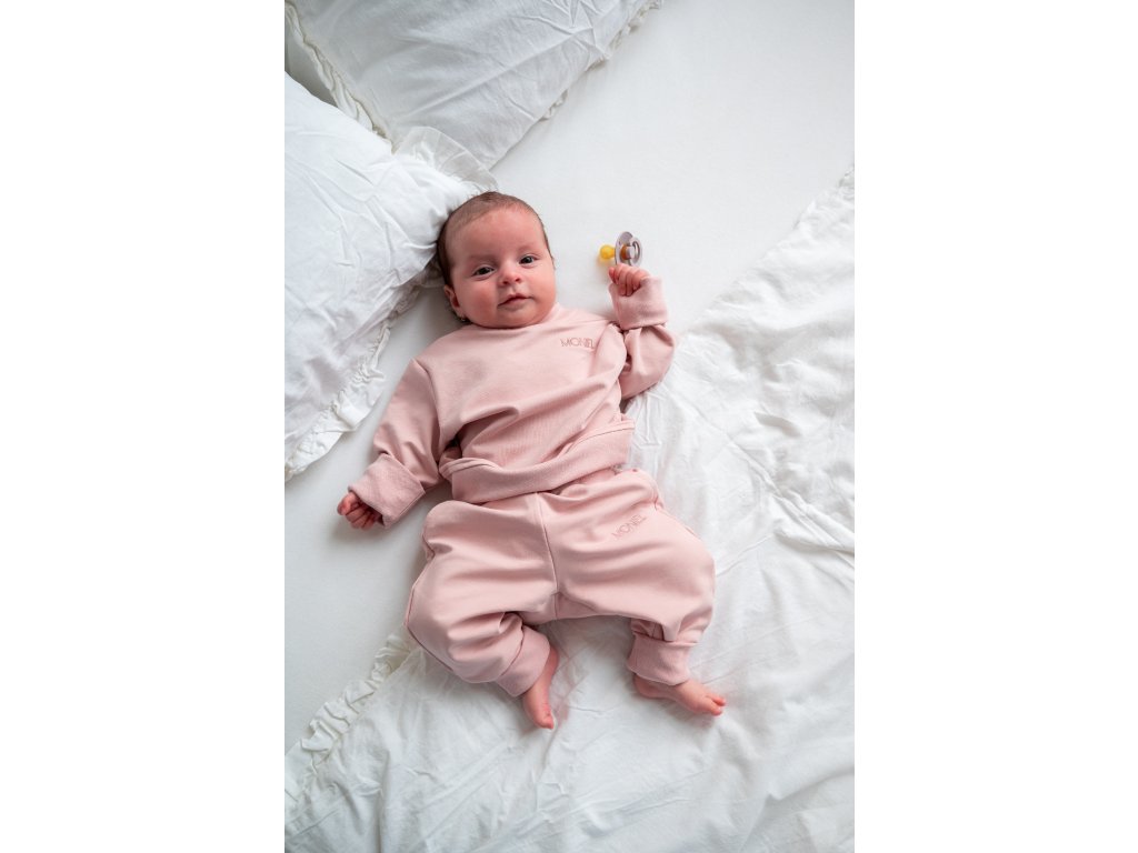 Moniel Basic Powder Pink Kids' Grow-With-Me Sweat Set is stretchy and wonderfully comfortable. Your little one will feel cozy at home and outdoors. The hoodie has grow-sleeve cuffs and the sweatpants are adjustable in length and width. Made in the Czech Republic. Sizes from newborn up to 8 years. Color: Powder Pink. Size: 104 3-4 years