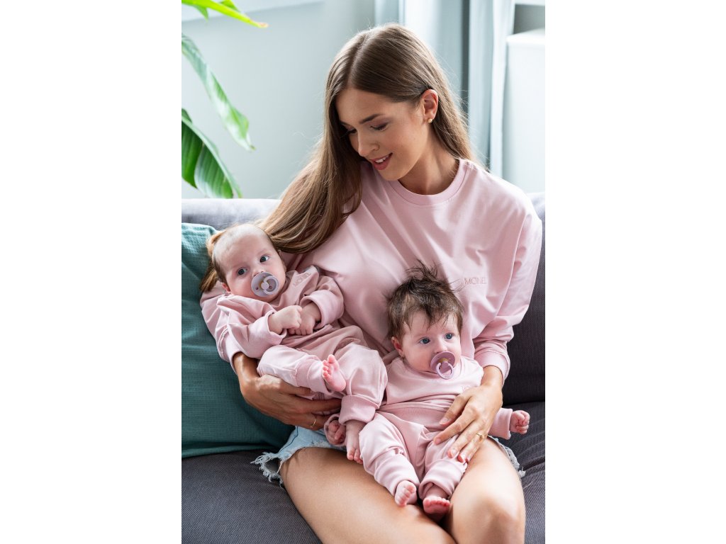 The Moniel Basic Powder Pink kids' grow-with-me sweatsuit will become a favorite piece in your child's wardrobe. It has a practical cut that adapts perfectly to your little one.