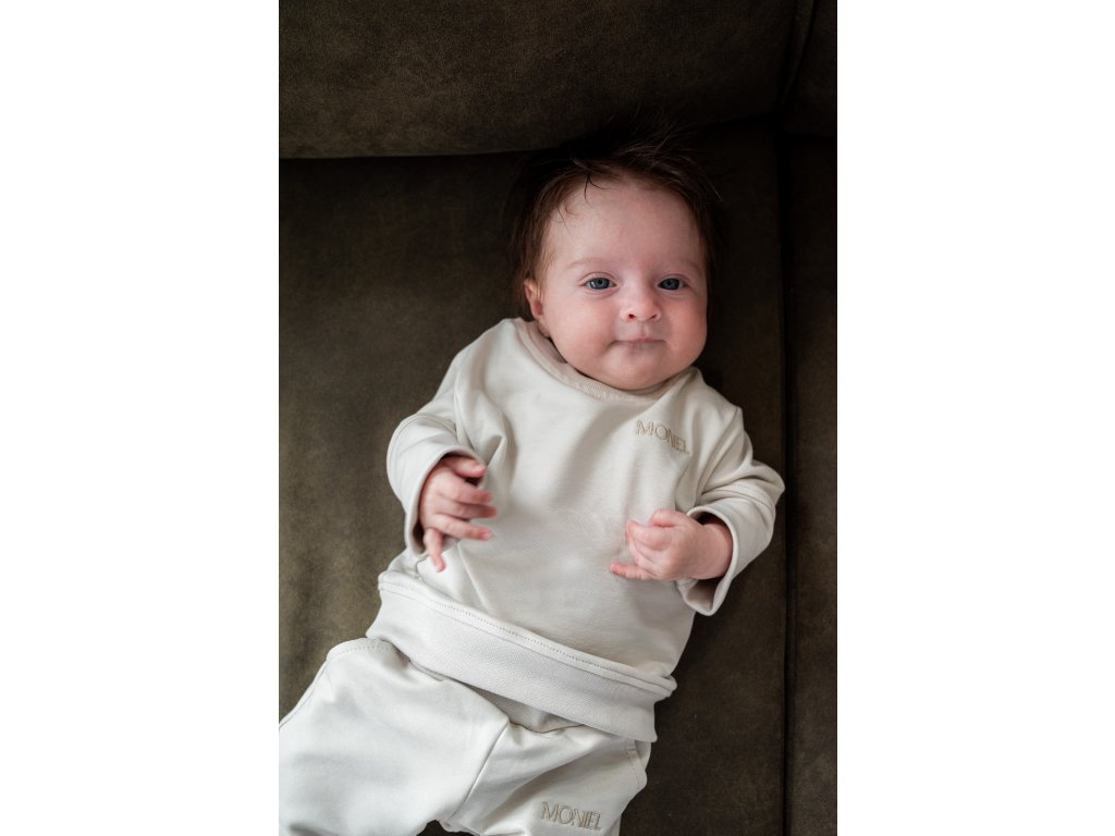 Moniel Basic Light Beige kids' grow-with-me tracksuit is stretchy and wonderfully comfortable. Your little one will feel comfortable in it at home or outdoors. The sweatshirt has grow-sleeve cuffs, and the sweatpants are adjustable in length and width. Made in the Czech Republic. Sizes from birth up to 8 years. Color: light beige. Size: 110/116 5-6 years