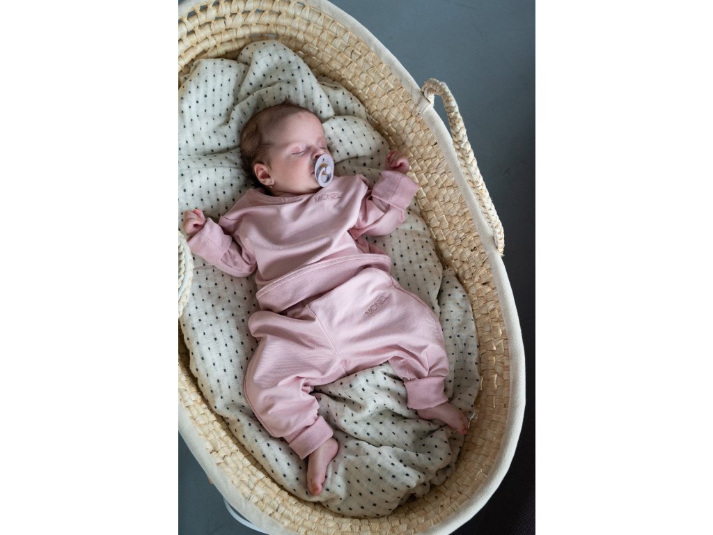 Moniel Basic Powder Pink kids' growable tracksuit is stretchy and wonderfully comfortable. Your baby will feel comfortable in it at home and outdoors. The hoodie has growable sleeves and the tracksuit bottoms are growable in length and width. Made in the Czech Republic. Sizes from birth up to 8 years. Color powder pink. Size: 110/116 5-6 years