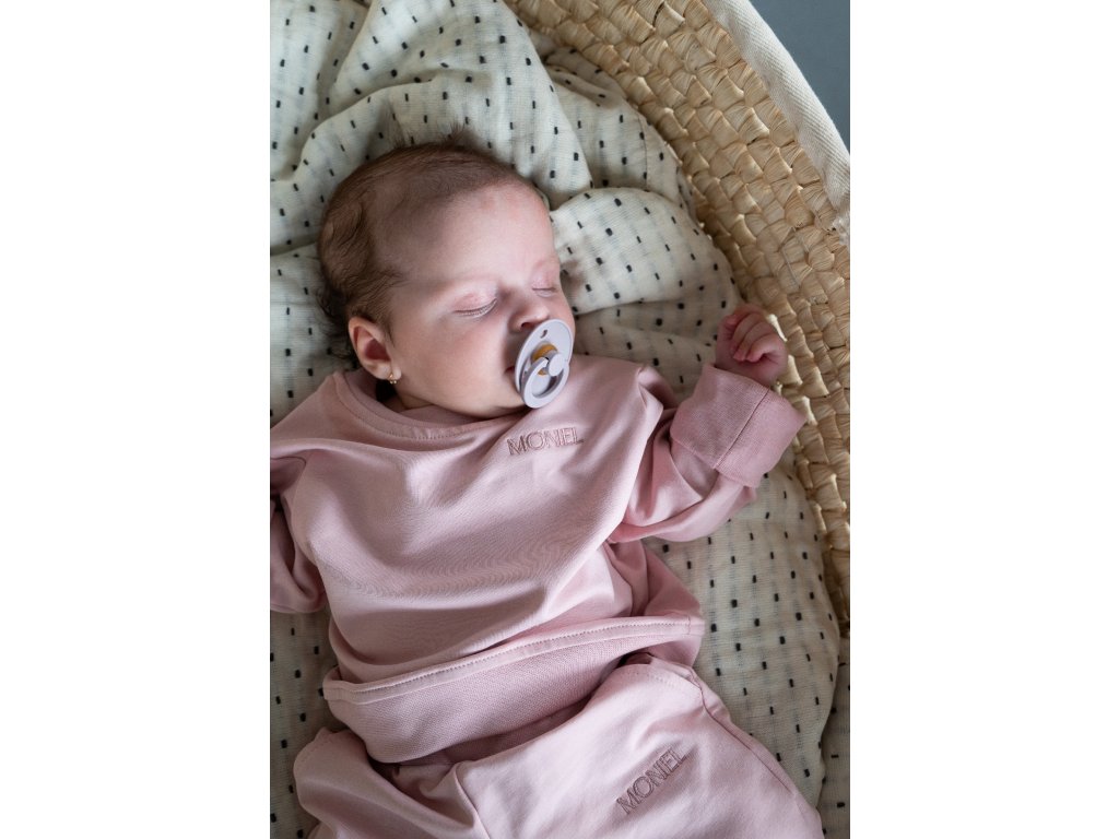The Moniel Basic Powder Pink kids' grow-with-me sweatsuit will become a favorite piece in your child's wardrobe. It has a practical cut that adapts perfectly to your little one.