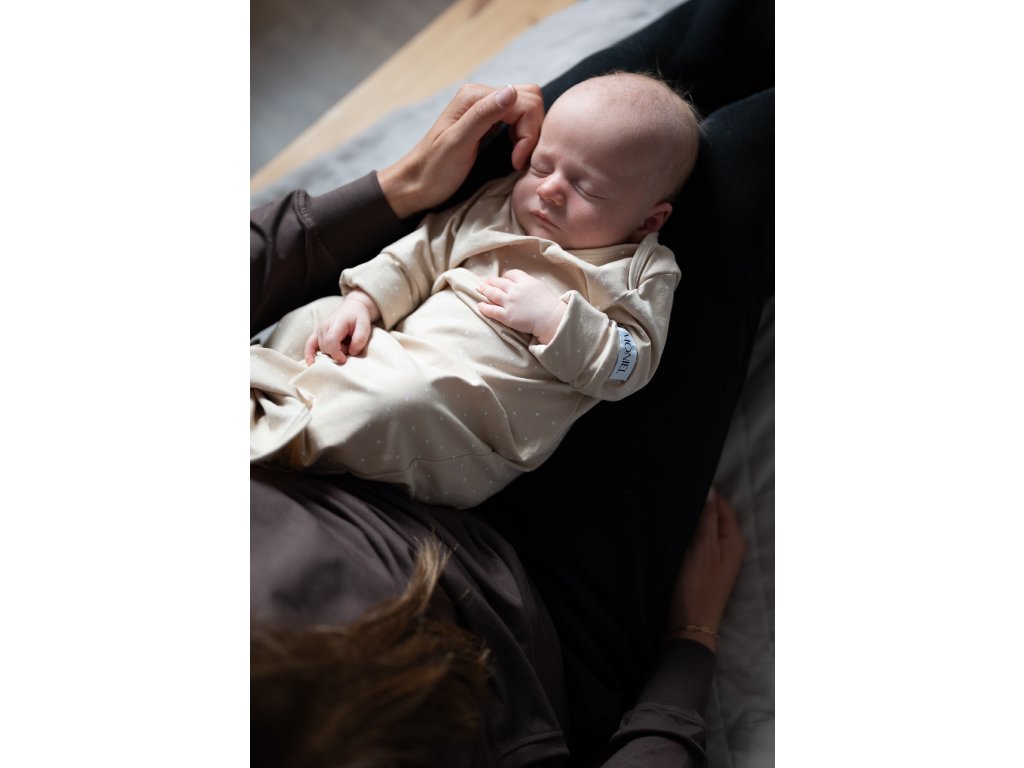 Baby Hospital Set includes growable onesie with knot and Dots newborn hat beige. With this set, your baby will experience the first days in comfortable and cosy clothing. We recommend combining with the Moniel maternity and nursing nightgown. Coordinate with your baby from the first days! Also great as a gift for a newborn baby.