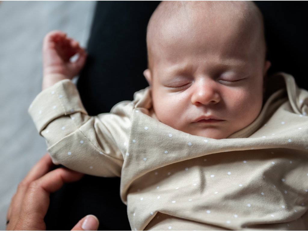 The baby has free legs in the bodysuit and can easily kick and move them as they please. This is important for the proper development of the hips. You can have the bodysuit tied with a knot or untie it and leave it completely loose. We recommend this during warm months, during breastfeeding, or tummy time.