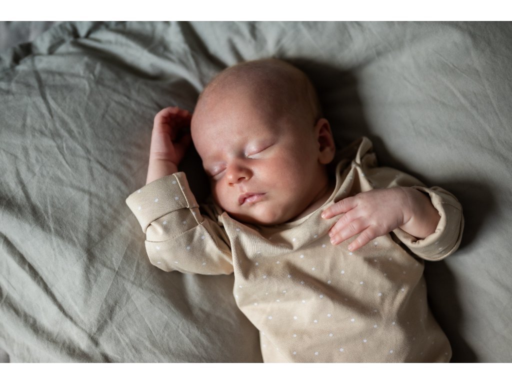 The baby has free legs in the bodysuit and can easily kick and move them as they please. This is important for the proper development of the hips. You can have the bodysuit tied with a knot or untie it and leave it completely loose. We recommend this during warm months, during breastfeeding, or tummy time.