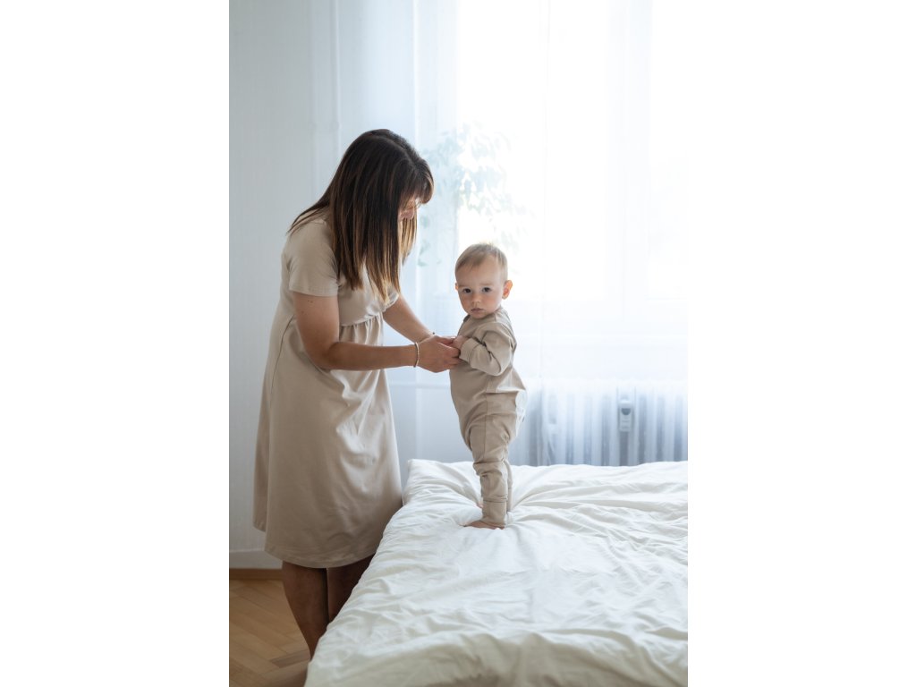 Moniel košilka/šaty kojící Pastel béžová s dlouhým rukávem