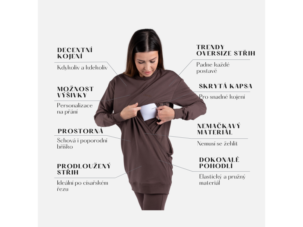 | Typ produktu: | kojicí a těhotenská dlouhá mikina, s výšivkou, dámská |
