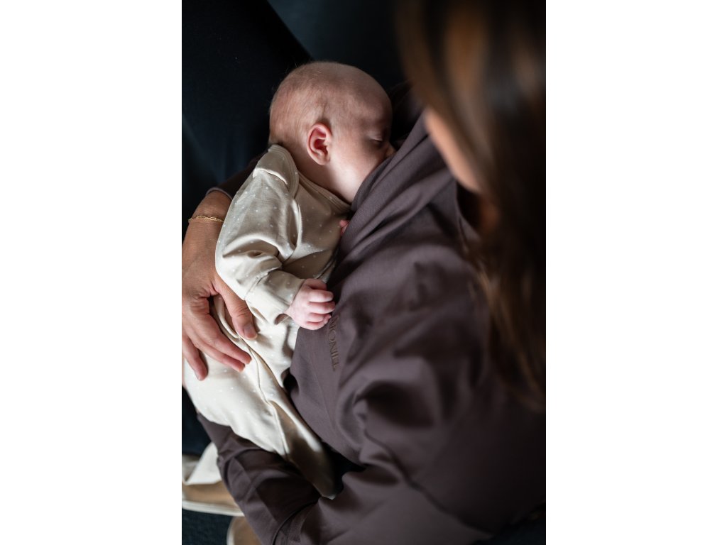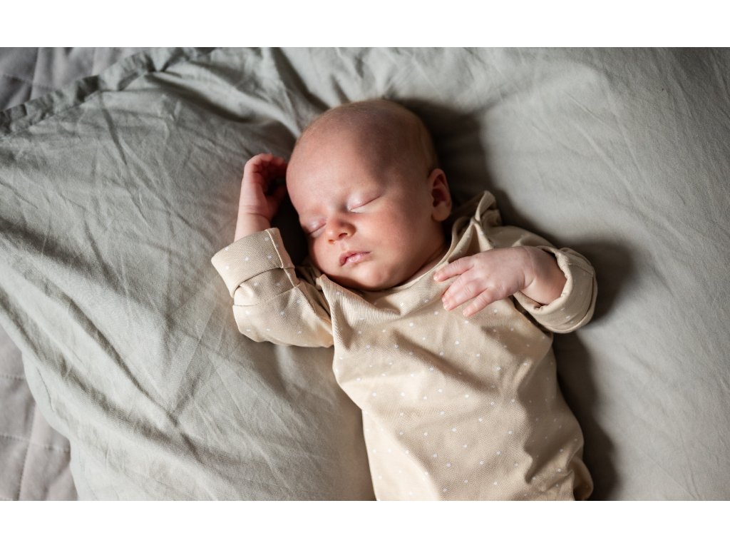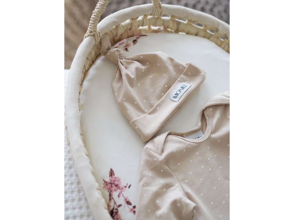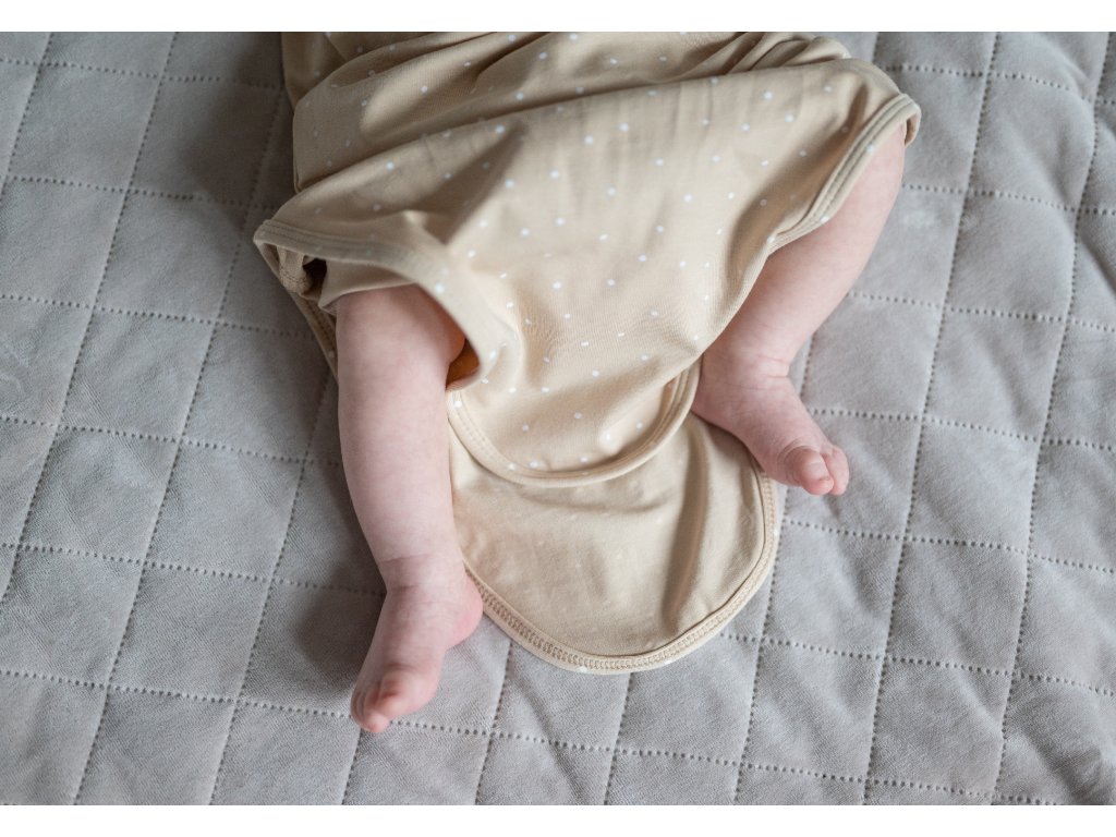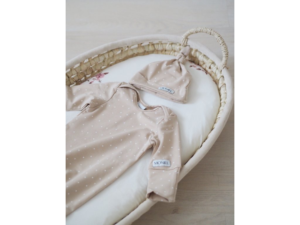 Novorozenecké rostoucí body s uzlem Dots béžová od české značky Moniel je vhodné pro miminka od narození do 3-4 měsíců.