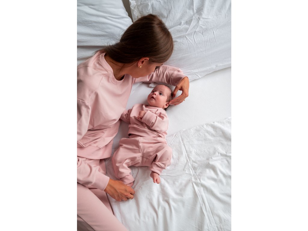 Set de trening din molton pentru copii Moniel De bază Roz pudră este elastic și minunat de confortabil. Copilul dumneavoastră se va simți confortabil acasă și afară. Bluza are mâneci cu sistem de creștere, iar pantalonii cresc atât în lungime, cât și în lățime. Produs în Republica Cehă. Mărimi de la naștere până la 8 ani. Culoare roz pudră. Mărime: 110/116 5-6 ani