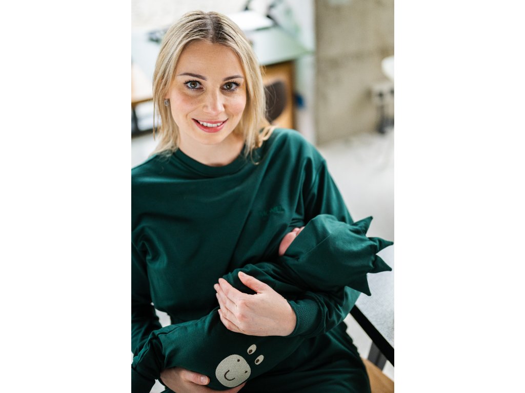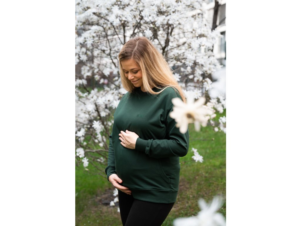 Hanorac scurt pentru alăptare și sarcină Moniel Verde închis este foarte confortabil, dar în același timp elegant. Are buzunare practice, prin care accesați ușor interiorul bluzei și astfel puteți alăpta discret oricând și oriunde este necesar. Confecționată în Cehia cu dragoste până la ultima cusătură. Culoare verde închis.