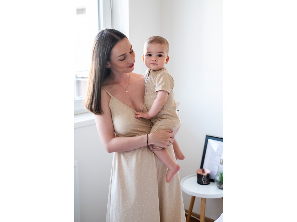 Copil salopetă de vară cu fermoar și mânecă scurtă Moniel Ursuleț Puncte bej este îmbrăcămintea ideală de primăvară și vară pentru copii. Poate fi purtată ca pijama ușoară pentru copii, îmbrăcăminte de casă, dar și ca o îmbrăcăminte confortabilă de vară pentru exterior. Este confecționată din material de bumbac natural, moale la atingere și rezistent la spălări frecvente. Salopeta este confecționată în Republica Cehă. Mărimi de la naștere până la 4 ani.