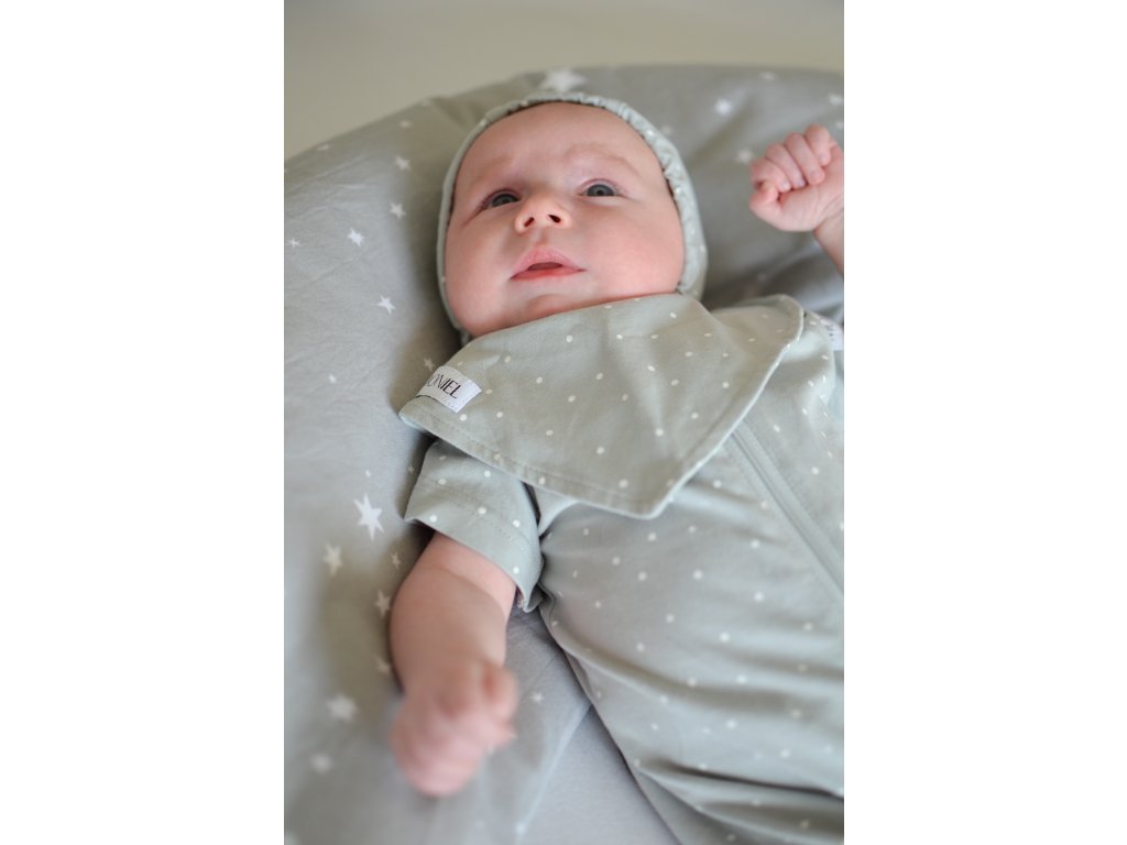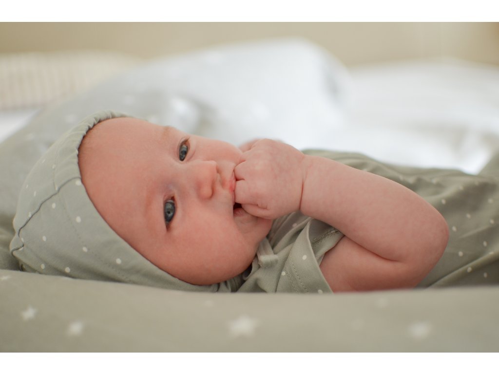 Căciula este fabricată din bumbac respirabil și este potrivită pentru utilizare pe tot parcursul anului. Recomandăm căciula ca protecție pentru cap atunci când călătoriți cu căruciorul, folosiți un scaun auto și transportați într-o chingă sau într-un portbebe.