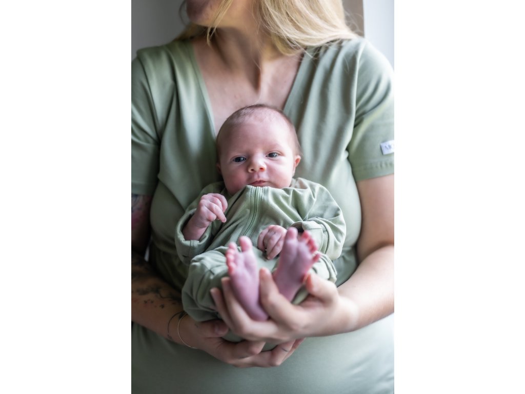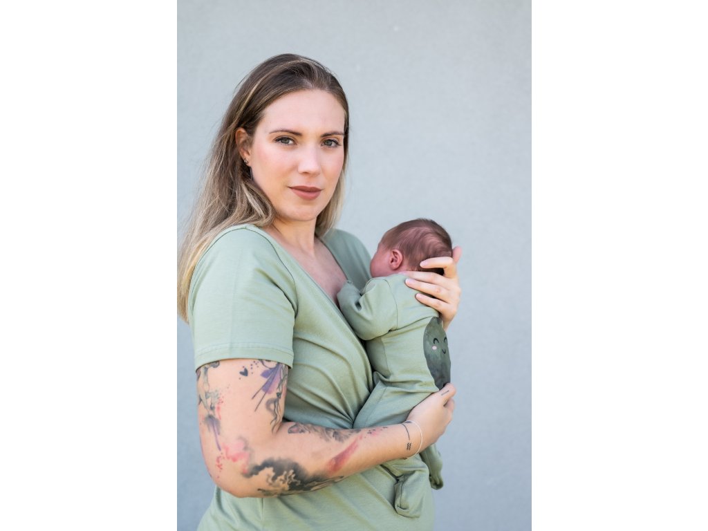 Bebelușul are piciorușele libere în body și se poate juca și mișca după pofta inimii. Acest lucru este important pentru dezvoltarea corectă a șoldurilor. Body-ul poate fi legat cu un nod sau lăsat complet desfăcut. Recomandăm acest lucru în lunile calde, în timpul alăptării sau al exercițiilor de gimnastică pentru bebeluși.