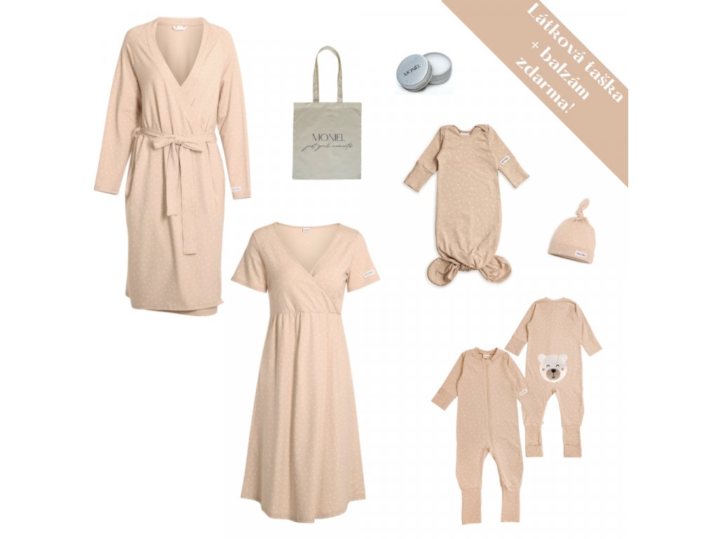 Moniel set mare de maternitate pentru mamă și bebeluș Dots bej cu un cadou gratuit