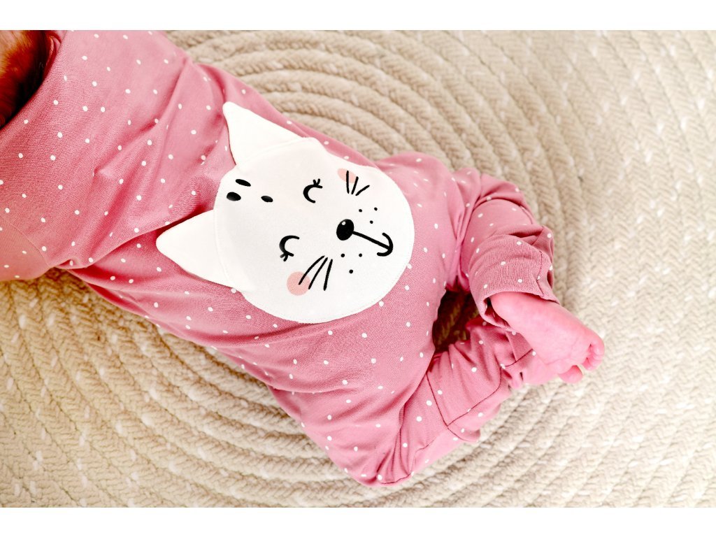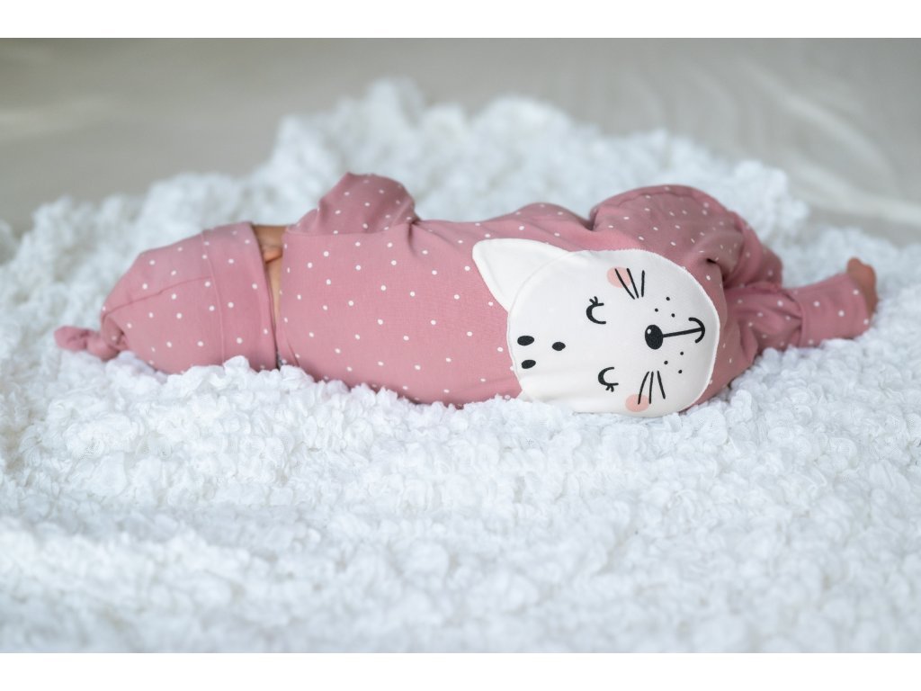 Este cusută manual în Republica Cehă din material natural plăcut la atingere. Materialul nu se șifonează, așa că dacă nu doriți, nu trebuie să o călcați. Designul original al salopetei cu buline este completat de un chip drăguț de animal pe spatele salopetei.
