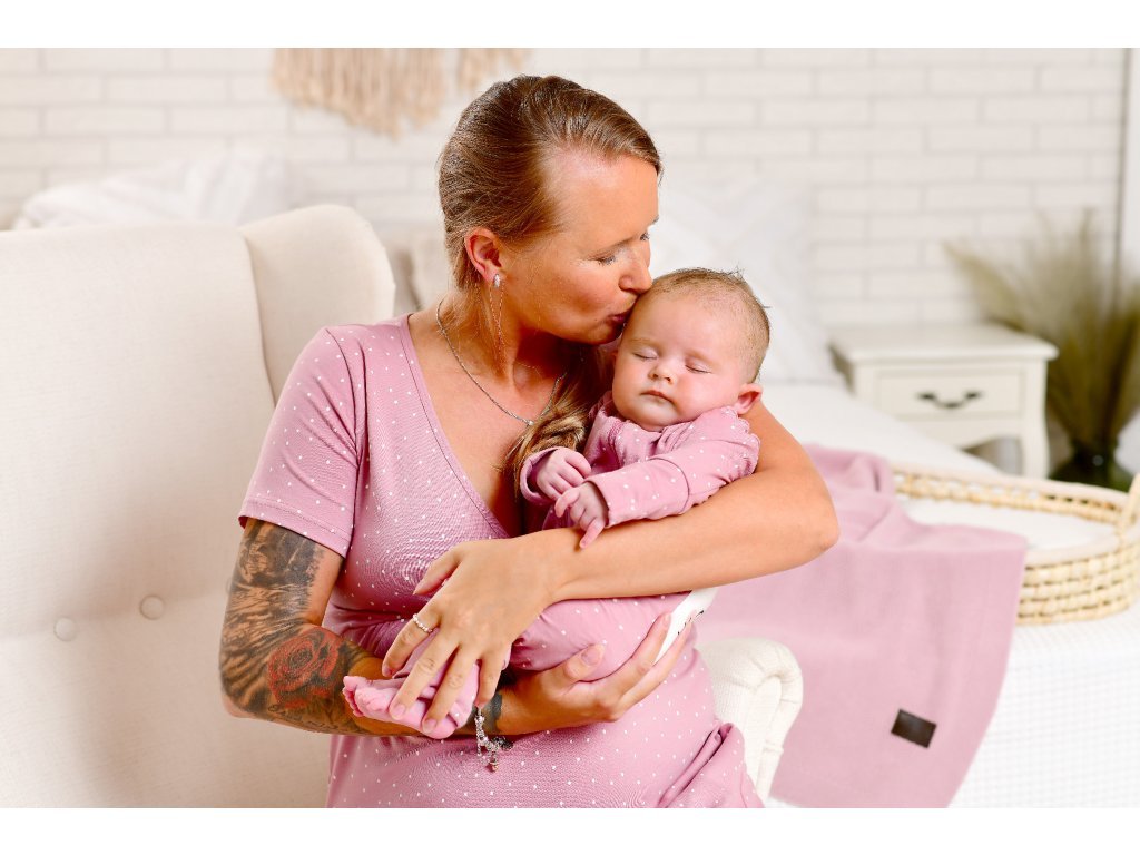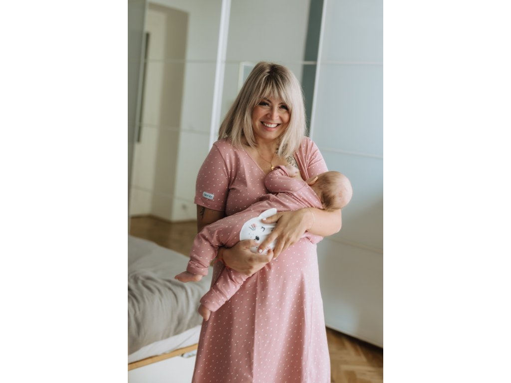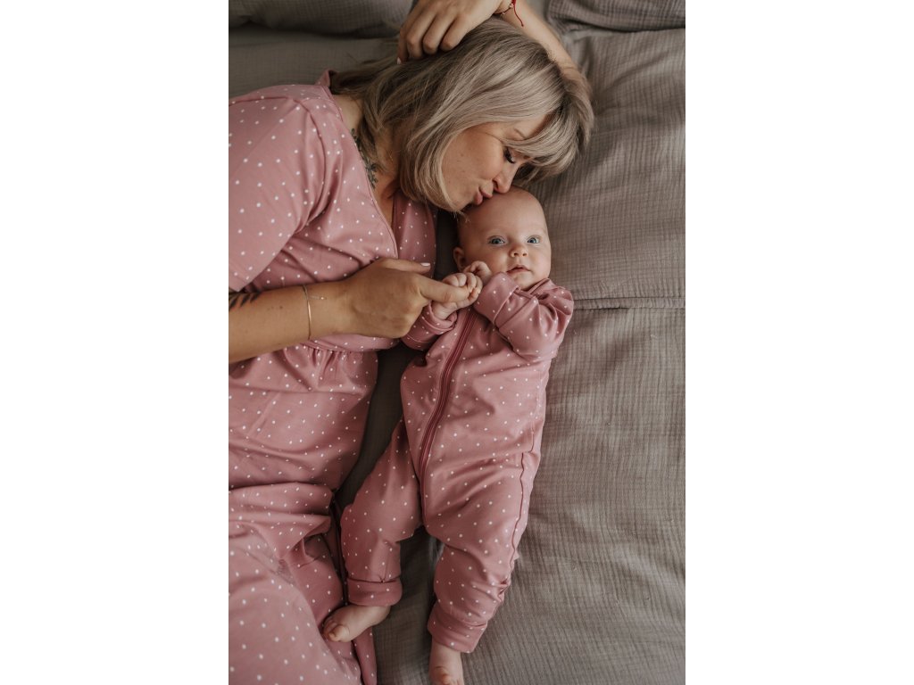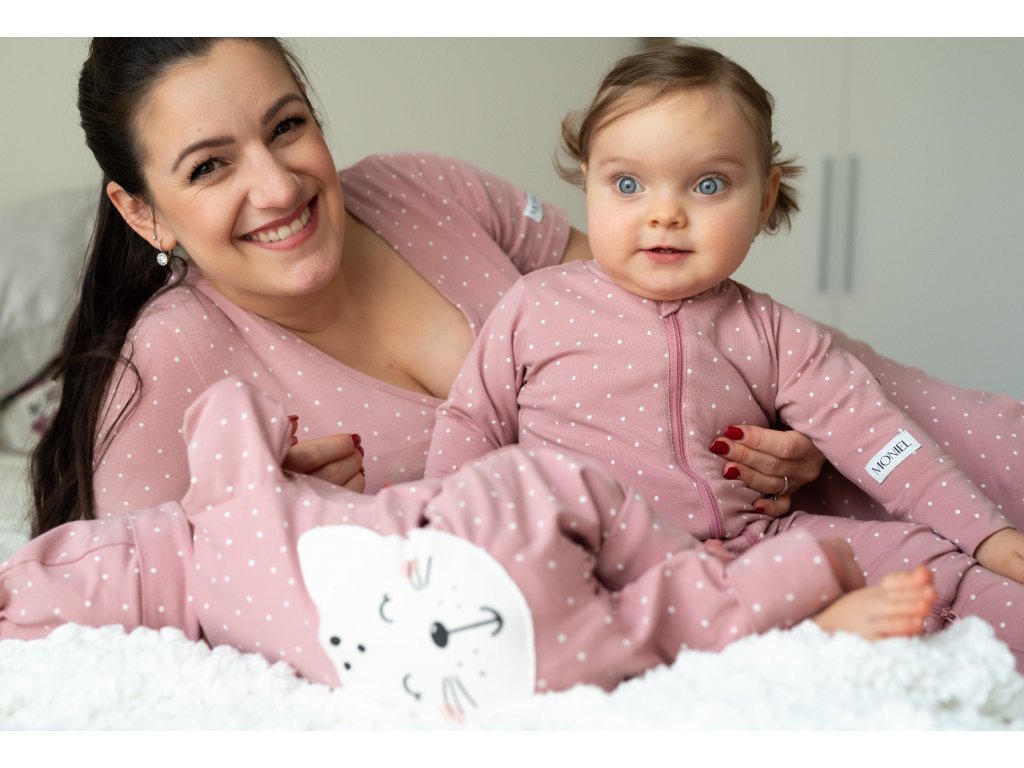 Moniel set mare pentru maternitate pentru mamă și bebeluș Dots roz cu cadou gratuit