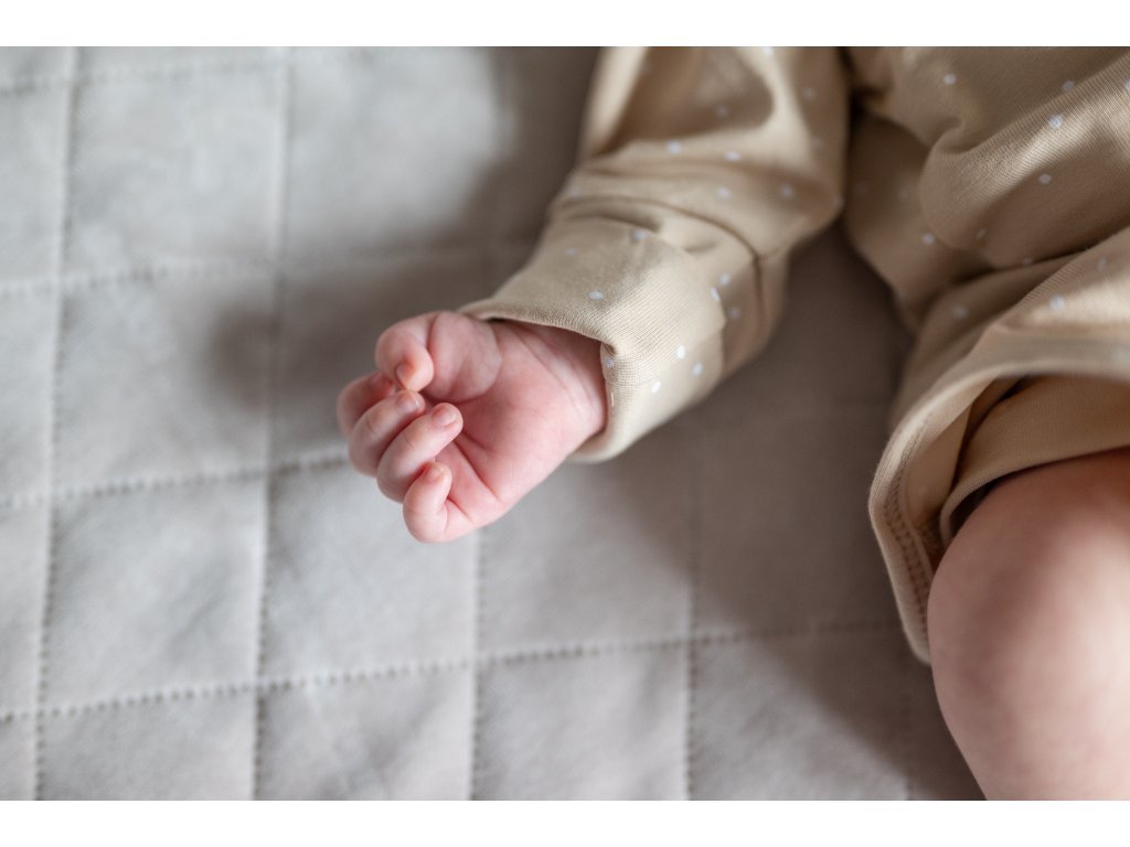 Mânecuțele body-ului cu nod au terminații speciale care permit acoperirea mânuțelor și previn astfel zgârierea feței, permițând menținerea mâinilor bebelușului calde.
