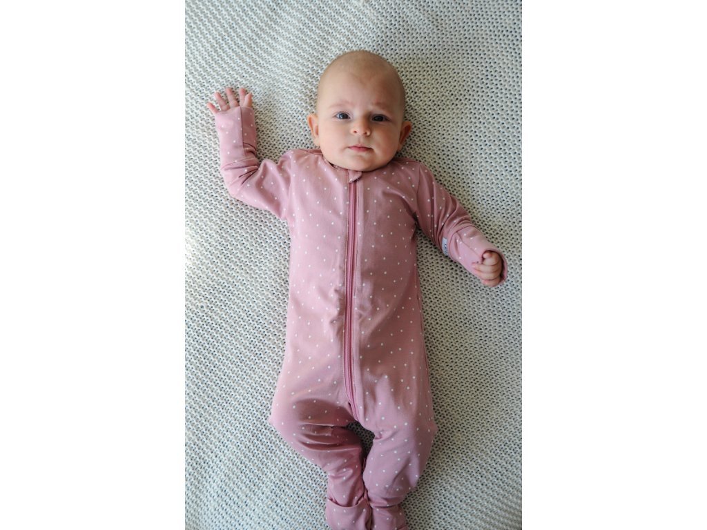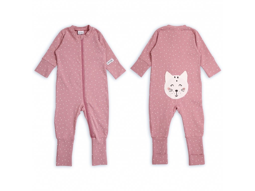 Are fermoar dublu, care permite nu numai îmbrăcarea ușoară fără a fi nevoie să închideți capsele, ci și schimbarea foarte rapidă a scutecului oricând este necesar. Fermoarul este terminat până la picior, astfel încât veți schimba scutecul bebelușului confortabil și simplu oricând în timpul nopții.
