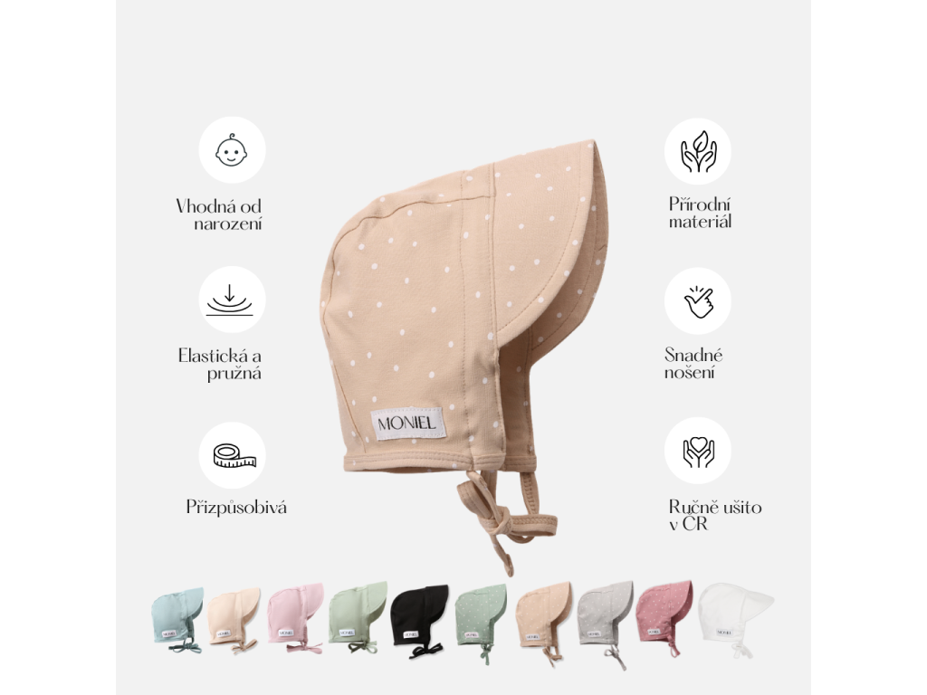 Klobúčik proti slnku je ručne šitý v Českej republike s láskou a maximálnou starostlivosťou, rovnako ako ďalšie produkty značky Moniel ♥