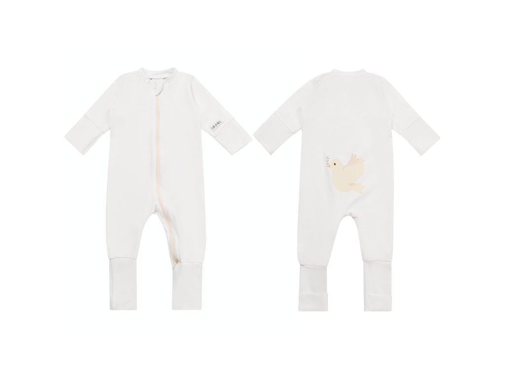 Má obojstranný zips, ktorý umožňuje nielen jednoduché prezliekanie bez potreby zapínania, ale aj veľmi rýchle prezliekanie, kedykoľvek je to potrebné. Zips končí na nohavičkách, takže môžete svoje dieťa pohodlne a jednoducho prebaľovať kedykoľvek počas noci.