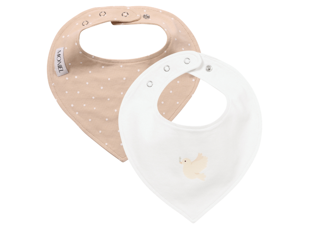 Moniel Sada 2ks rostoucích dětských slintáčků Dots béžová/White bílá 0-24 měsíců