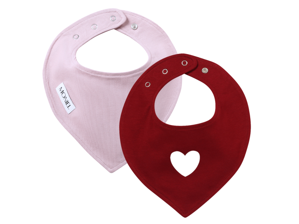 Moniel Sada 2ks rostoucích dětských slintáčků Pastel růžová / Love červená 0-24 měsíců