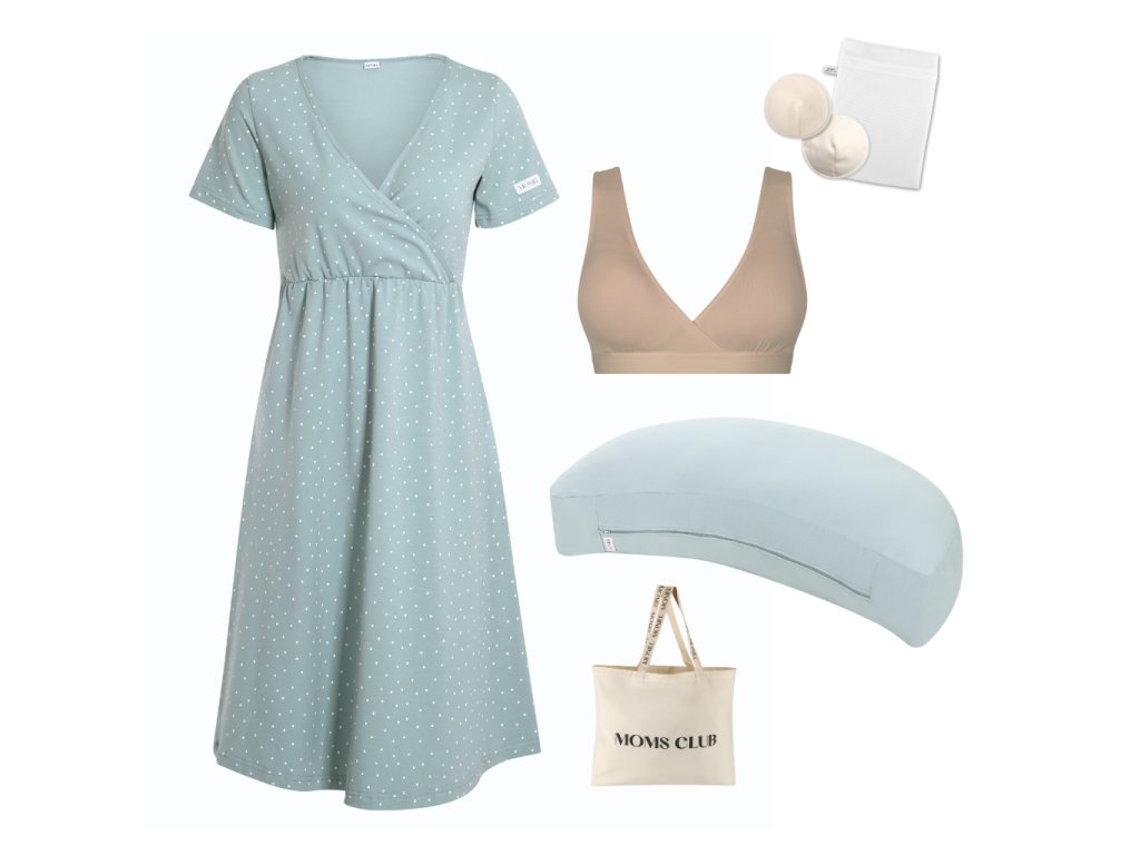 Sada pro pohodlné začátky kojení Dots mintová & Pastel mintová a podprsenka Nuuma Nude, oblečení vel. M