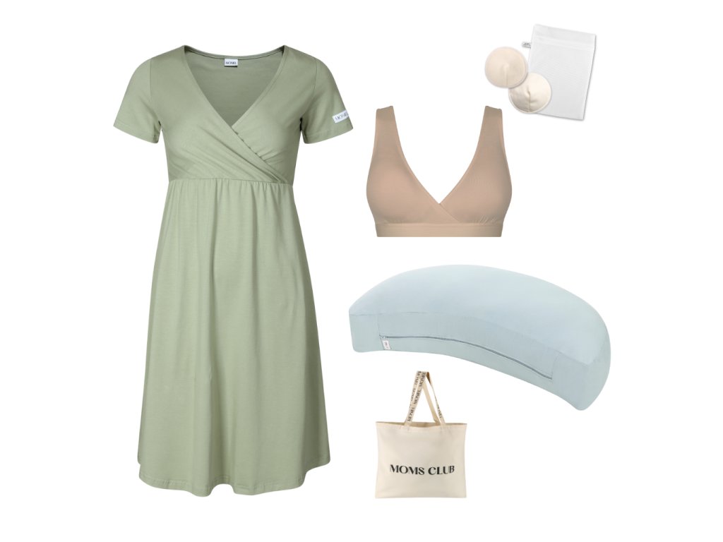 K sadě vám zabalíme prostornou tašku s nápisem moms club jako DÁREK. Do tašky se pohodlně vejde i celý kojící polštář. Sadu si díky tomu můžete vzít s sebou do porodnice a usnadnit si tak čekání na spuštění laktace a první dny kojení v porodnici.