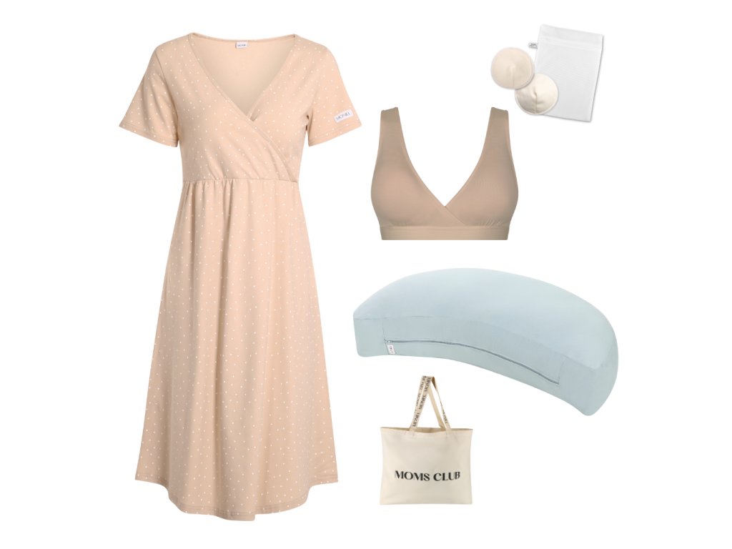 K sadě vám zabalíme prostornou tašku s nápisem moms club jako DÁREK. Do tašky se pohodlně vejde i celý kojící polštář. Sadu si díky tomu můžete vzít s sebou do porodnice a usnadnit si tak čekání na spuštění laktace a první dny kojení v porodnici.