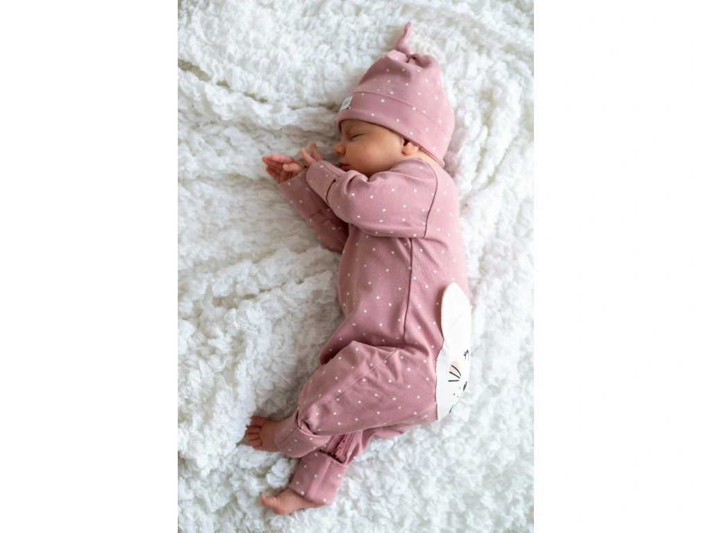 Sada k narození miminka Dots růžová obsahuje novorozeneckou čepičku a rostoucí slintáček, tedy dvě věci, které miminko potřebuje každý den. Díky elastickému materiálu a promyšlenému střihu produkty skvěle sedí, nepadají, neškrtí a rostou s miminkem.
